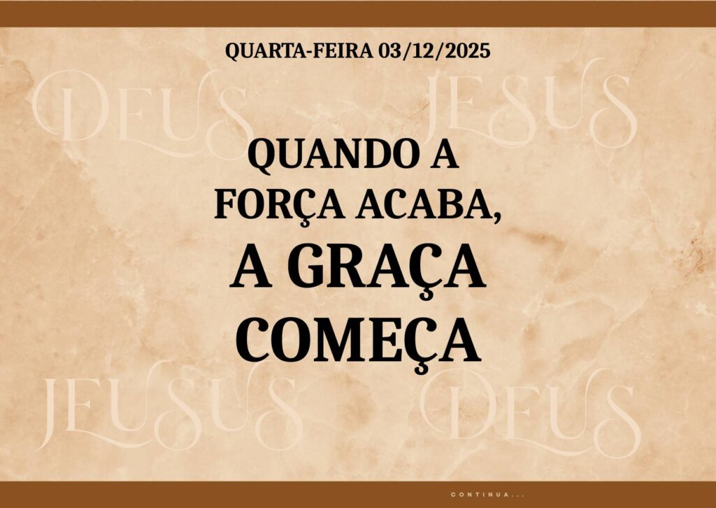 Devocional Ela com Ele • Quarta-feira 03/12/2025 Palavra para o seu coração Quando a Força Acaba, a Graça Começa Toda […]